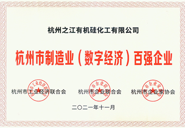 2021年11月 杭州市制造業(數字經濟)百強企業(之江有機硅)